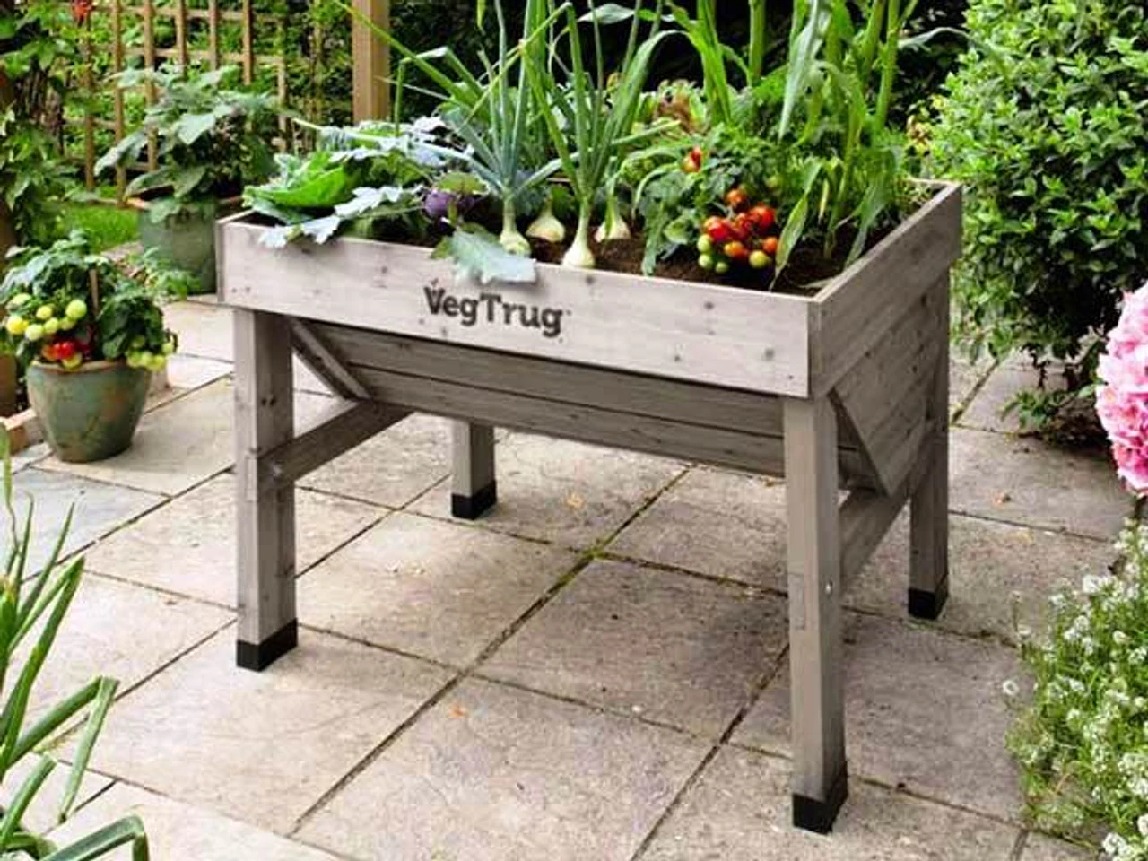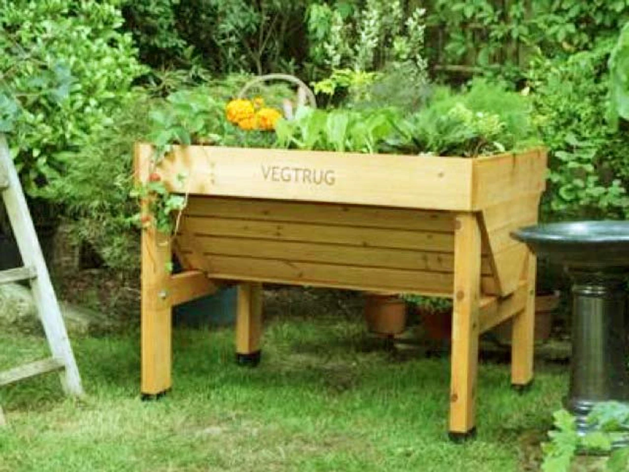 The Vegtrug is the raised vegetable trough planter that is the perfect blend of raised bed and garden furniture. It is the easy way to have your own vegetable garden anywhere, from outdoors on patios, porches and balconies, to indoors in greenhouses, polytunnels or even in the house. It is a completely portable vegetable planter on legs that has been specially designed for vegetable gardening. The Vegtrug has many advantages over regular raised beds, it is a good deal taller and stands at a comfortable waist height. The extra height helps protect vulnerable vegetable seedlings from slugs & snails, low flying pests like the carrot fly and fouling by household pets. The main body of the trug completely contains all the soil so you have more control over it, good healthy soil is the foundation of and most important part of any vegetable garden. The timber used is sustainably sourced fir and is treated in vegetable gardening friendly stain to prevent rot. A membrane liner also comes with the trug to offer a little extra protection.