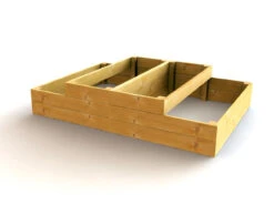 Our 2 tier urban garden raised bed kit is made up of two central 2 tier 1.8m x 1.2m sections placed back to back to form an attractive stepped bed. This kit is available at two height options depending on your requirements. The lower version moves from a 170mm (6.6 inch) to a 340mm (13.4 inch) high tier and is suitable for shallow rooted salad crops in the lower section, with deeper rooted or more demanding crops in the 340mm high upper level. The bed gives 2.16 square metres (23 sq. ft.) of 170mm growing space and 2.16 square metres (23 sq. ft.) of 340mm space.
