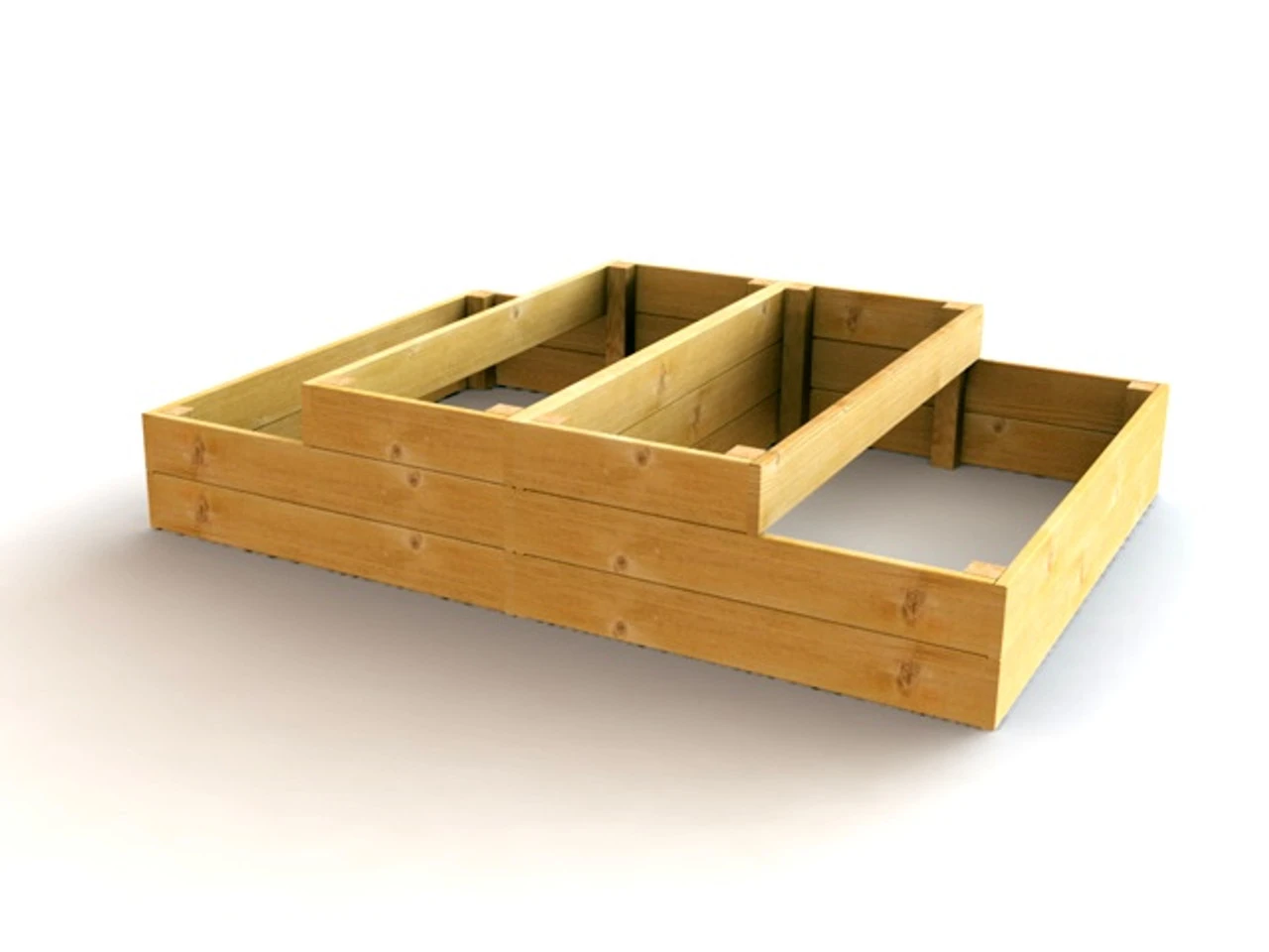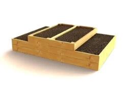 - A smart stacked raised bed featuring split levels for growing a wide range of vegetable crops.