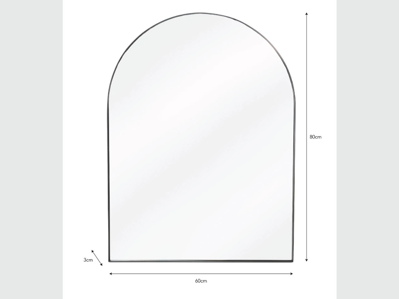 The Arched Wall Mirror is suitable for use above bathroom sinks, desks, vanity units, or console tables. Crafted in iron with a black frame, it has a minimal curved shape.