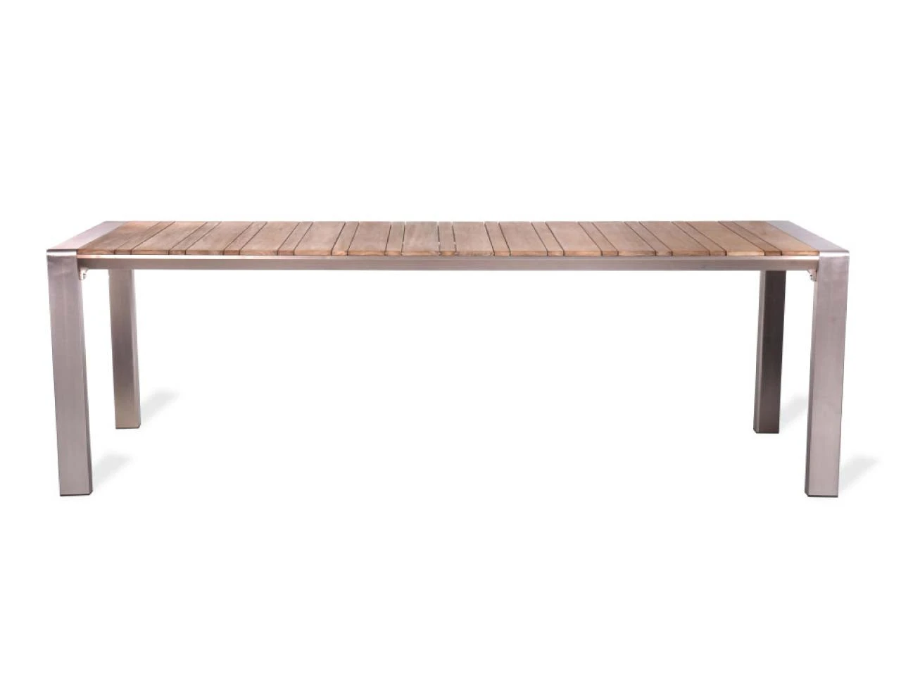 The large Ashby outdoor table is big enough to comfortably seat eight people. The table is made from slatted teak wood on heavy duty aluminium legs. Perfect for outdoor living and garden parties, this is also ideal for use inside as a dinner or kitchen table.Some assembly is required but easy to follow instructions are provided. While the Ashby tables are weatherproof, please remember to store under cover if stored outside during the Winter months, make sure the table is dry before covering.