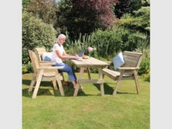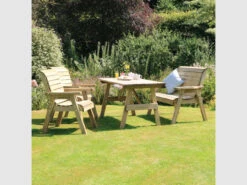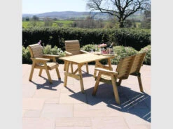 Like all the items in the Charlotte range of Zest garden furniture, this Charlotte dining set is easy to put together with just a few elements to assemble. Sturdily made from pressure-treated, FSC® certified timber it comes with a ten-year guarantee against rot and so will stand the test of time. It comes with clear assembly instructions.