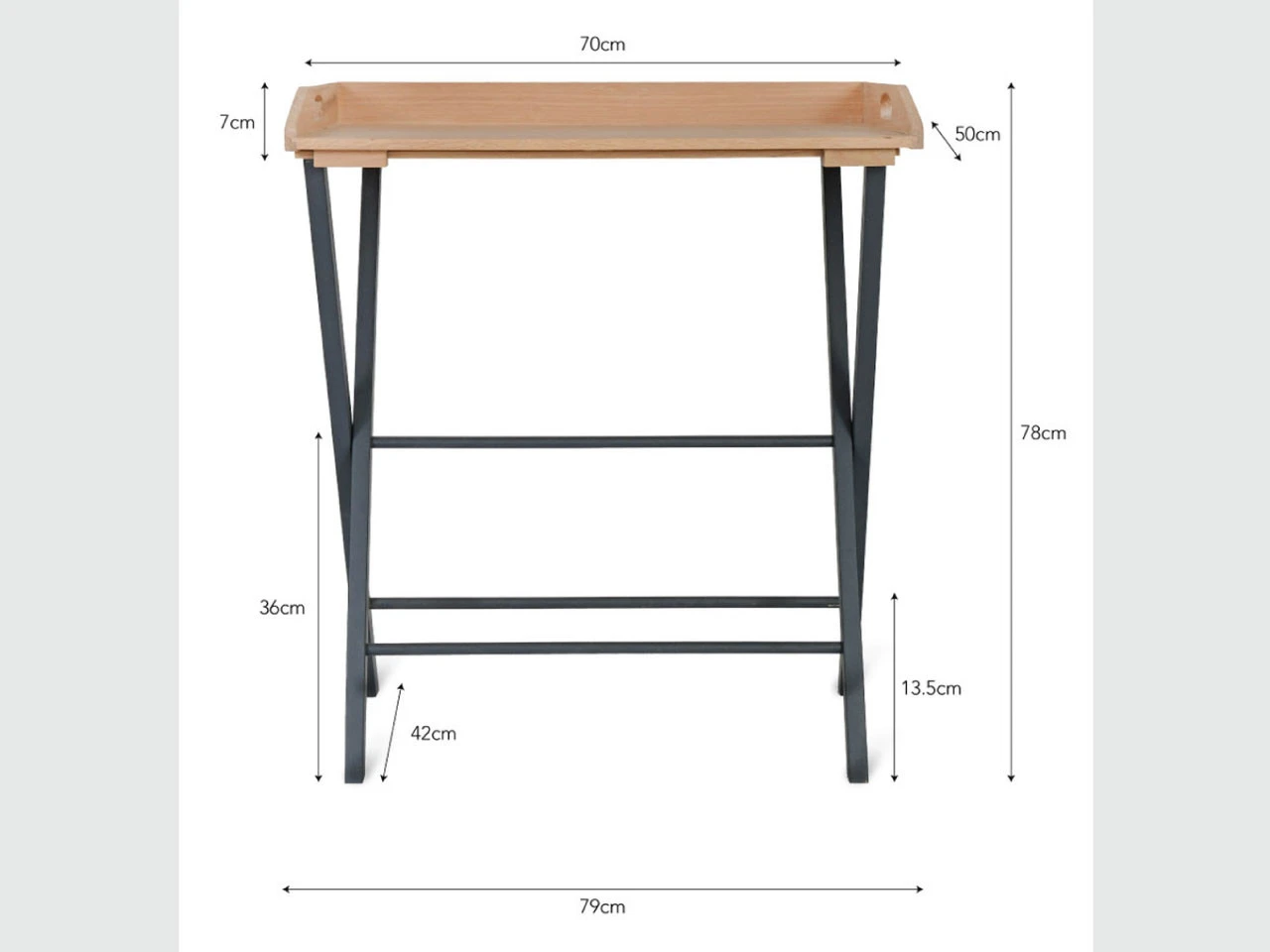 The Clockhouse Desk Tray makes for a stylish and compact workspace. The tray top is crafted in Oak and the Beech legs are painted in a Carbon finish. Cut-out handles allow you to lift off the tray when necessary, while foldable legs add to the portability and mean that the desk tray can be easily stored away. The tray can fit a laptop and notebooks, a cup of tea or a lamp. It’s a minimal design to discourage clutter in your workspace. Webbing underneath the tray adds extra stability.