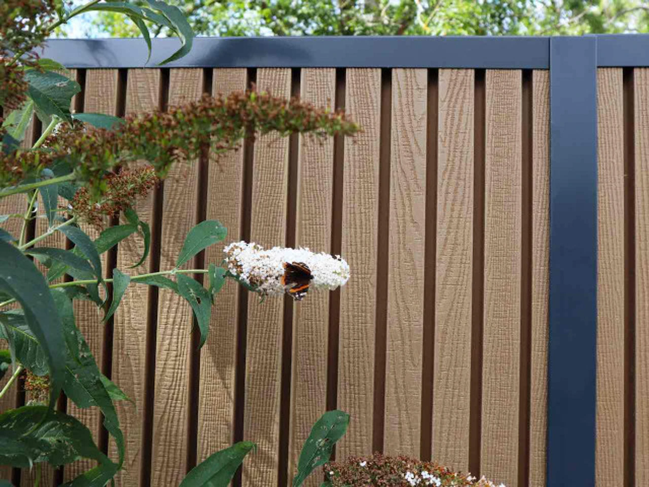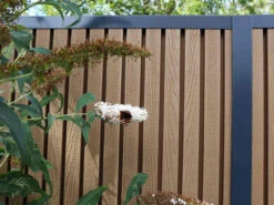 1.8m slatted ‘Urban’ style composite fence panles for use with Durapost fencing system. Our composite fence panels are made from 70% recycled material and are 100% recycleable. The panels are UV stabilised and are completely rot proof so will give many years of service while retaining their supberb good looks.