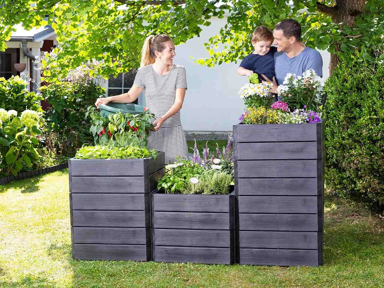 Ergo Quadro raised bed systems are customisable raised garden planters. Placing multiple sets on top of each other increases working height by 25cm a time. Unlike other hard plastic raised planters the Quadro has the look and feel of timber. By building up you can dremove the need for bending down and settle at the most comfortable working height for the gardener. These can also be used as compost bins. Supplied in a handy flatpack kit.