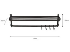 The Farringdon steel luggage rack has a shelf and movable S style butcher hooks on the rack for hanging or storing luggage and clothes. It was inspired by the racks typically seen on older trains. Made from steel with a clear matt laminate finish, this rack has a smooth finish that can be easily cleaned with a damp cloth. Designed for indoor use only.