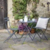 A foldable steel bistro bench for indoor or outdoor use. They are weatherproof so are perfect for outdoor living, covering is recommended if the benches are left out over the Winter months. Ensure that they are completely dry before covering.