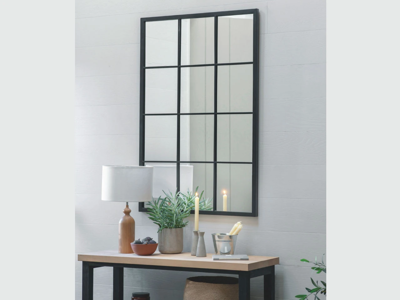 Crafted with powder coated steel, the Fulbrook Rectangular Mirror has a decorative window pane design. It can be used both indoors and outdoors, adding character to your garden area or elegance to your home. The steel is e-coated for a high quality finish.
