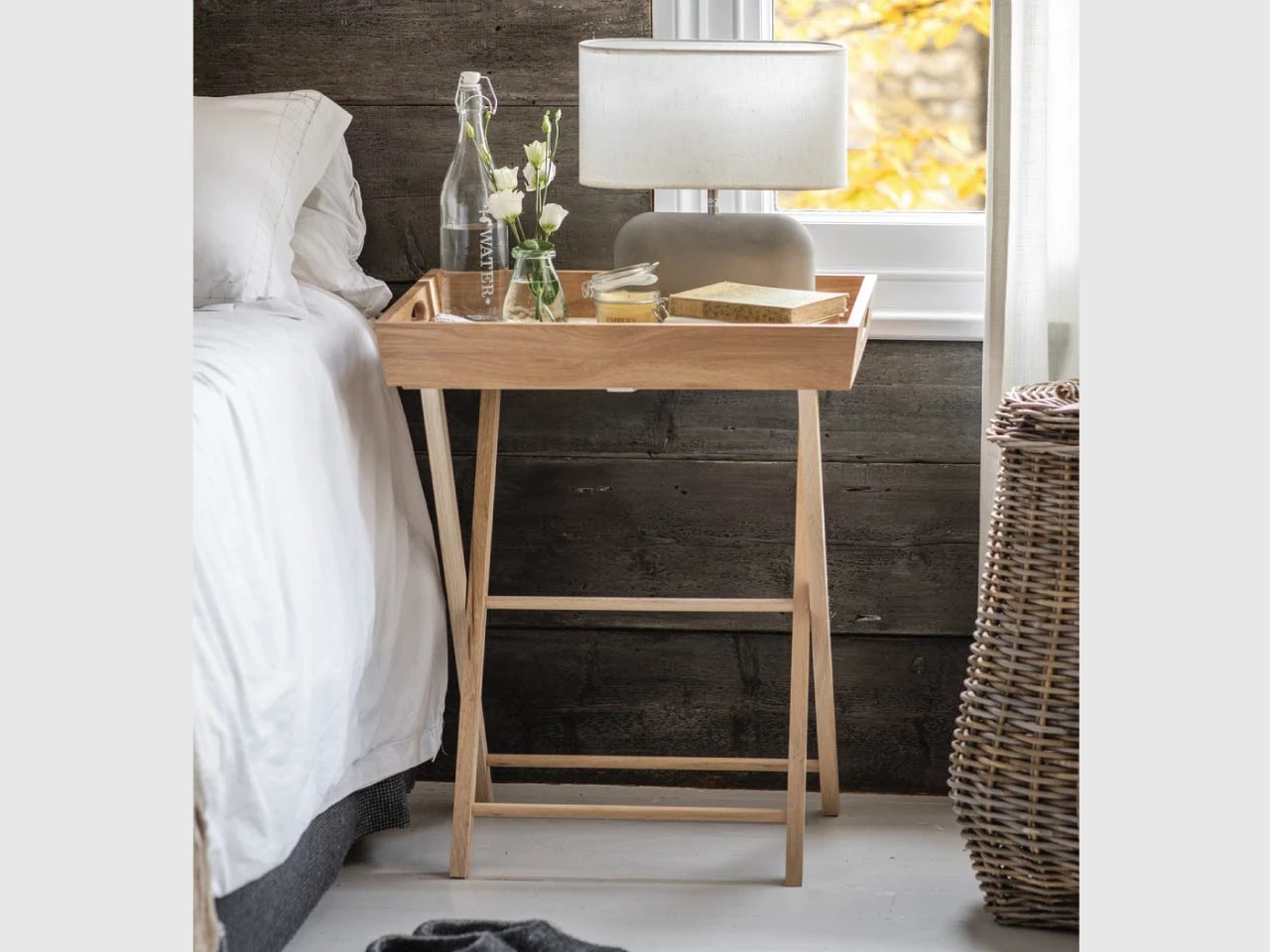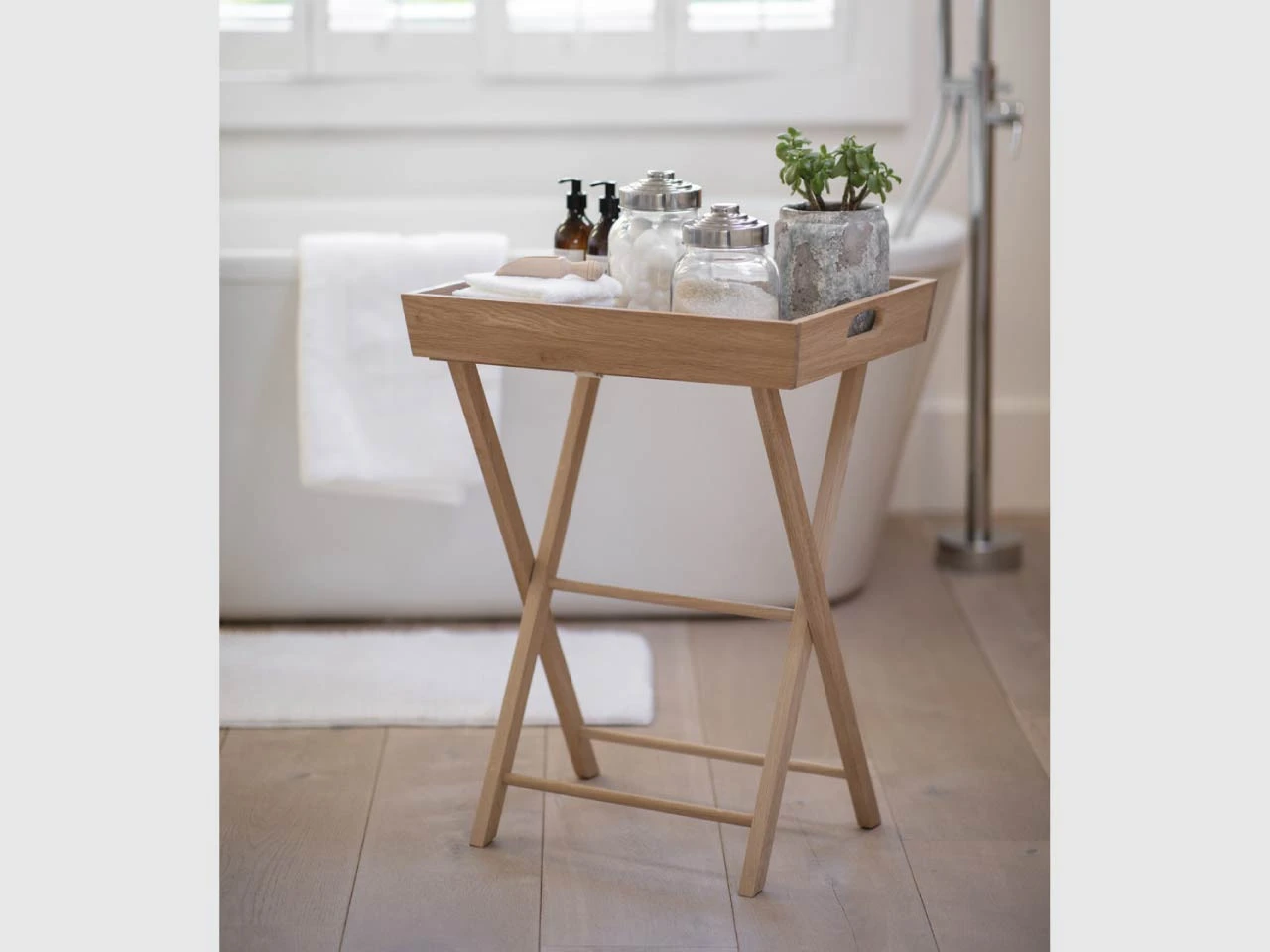 The Hambledon Butlers Tray is a portable and versatile tray that can serve as a stylish addition to a hallway, the bedroom or the living room. Use it as a tray or side-table for reading material, snacks, hot drinks and beverages, a lamp, or a games console. Crafted from a mixture of Oak Veneer and Solid Oak, it comes fully assembled. Foldable legs and a removable tray make for easy portability and storage. The responsibly sourced material has been lightly oiled to protect the natural finish and prevent staining. With cut out holes at either end, the tray is easily detachable.