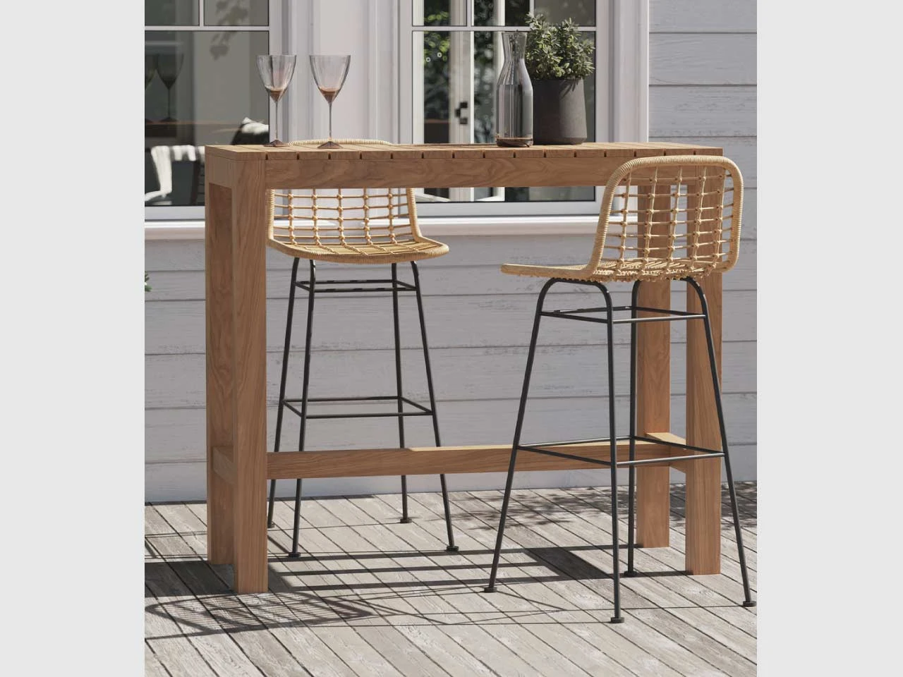 The perfect centre point for any outdoor gathering or garden party, this bar table looks equally well indoors too. It is weatherproof and made from sturdy teak wood. Enough room to seat four people. Remember to store under cover if stored outside for long periods of time or during the Winter months. Ensure that the furniture is completely dry before covering.