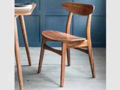 Crafted from solid walnut, the Kersoe Dining Chair features a rounded wooden back and finely tapered legs. With its pared back aesthetic, the chair can be used in dining room, study or bedroom, as well as being a natural complement to the Kersoe Dining Table.