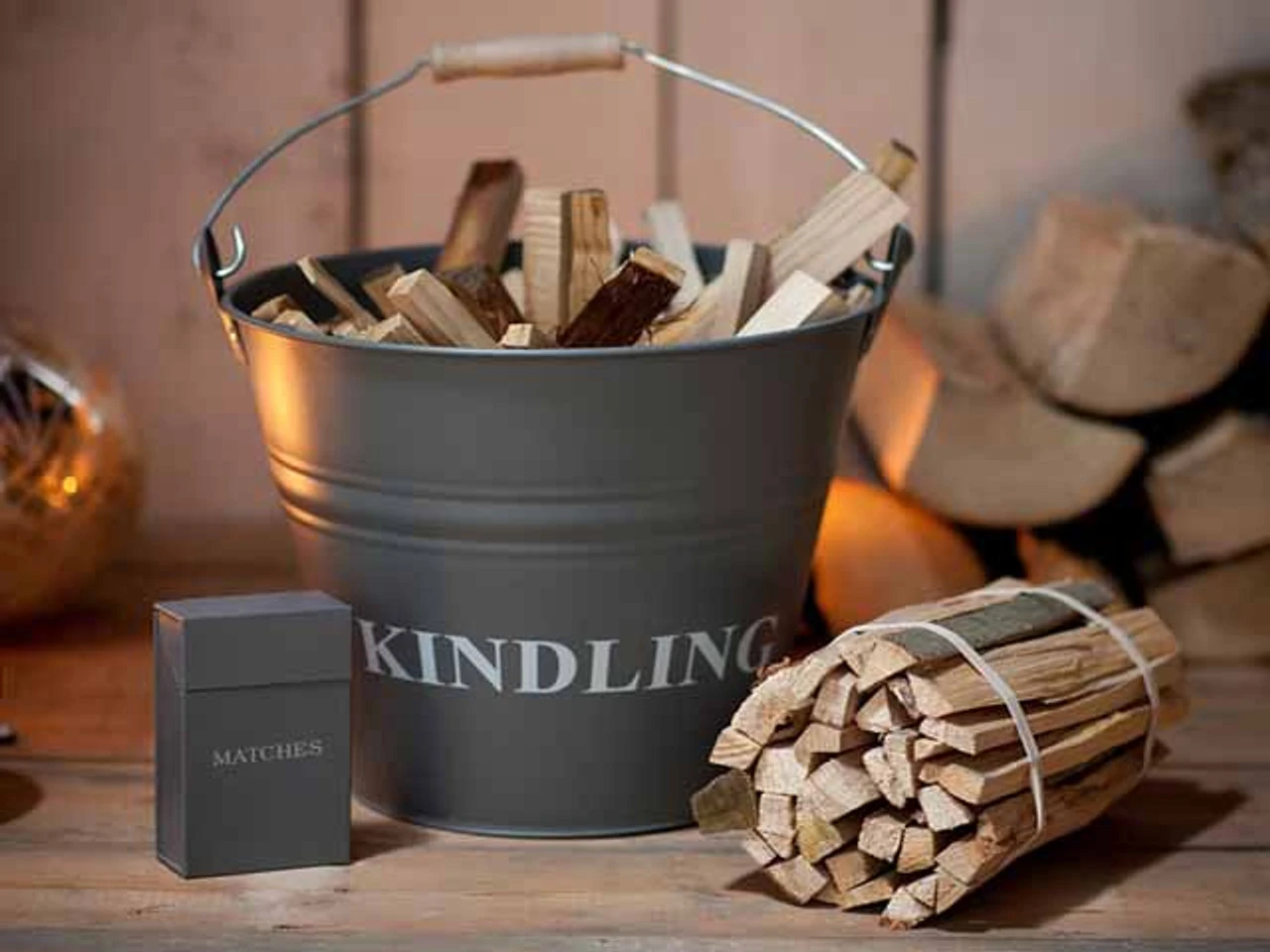 The kindling bucket comes in a nice charcoal colour finish and is a stylish way to store unsightly kindling for the fire. It has a comfortable wooden hand grip on the handle and is very easy to fill and carry. It is not only perfect for storing and carrying sticks and other bits of kindling, it can also be used for; coal, ashes, turf, small logs, soil, sand and water. A great all round bucket for the fireside and entire home.