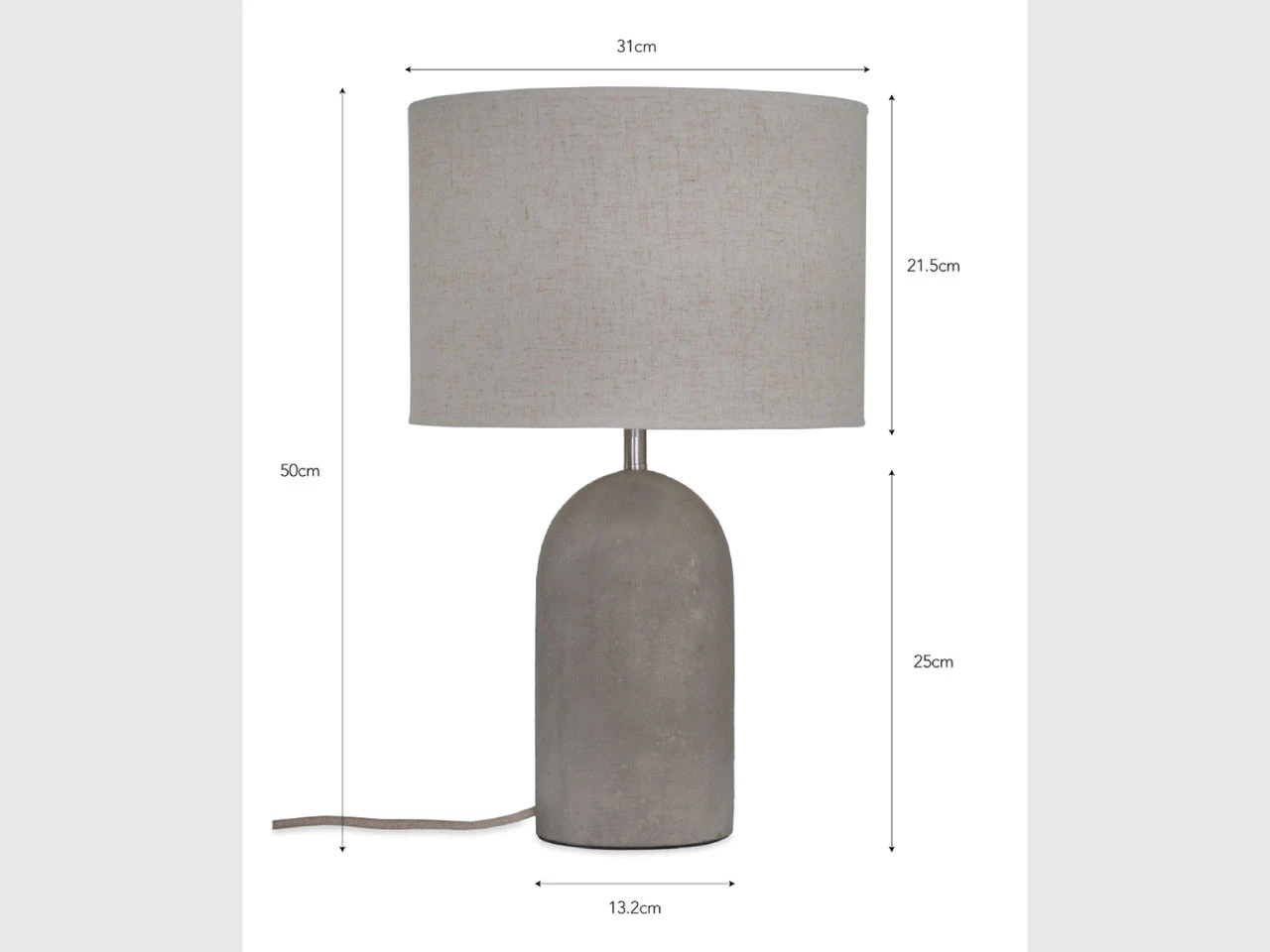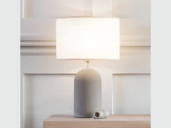 The Millbank table lamp is crafted in polymer concrete and linen with a rope style cable including switch. The concrete used make the lamp heavy but soft to the touch. The linen shade included is biscuit in colour with brown and grey specks. Ideal for either side of the bed or on any side table. It takes an E27 bulb and has a max wattage of LED 10W. Not tested for use in bathrooms.