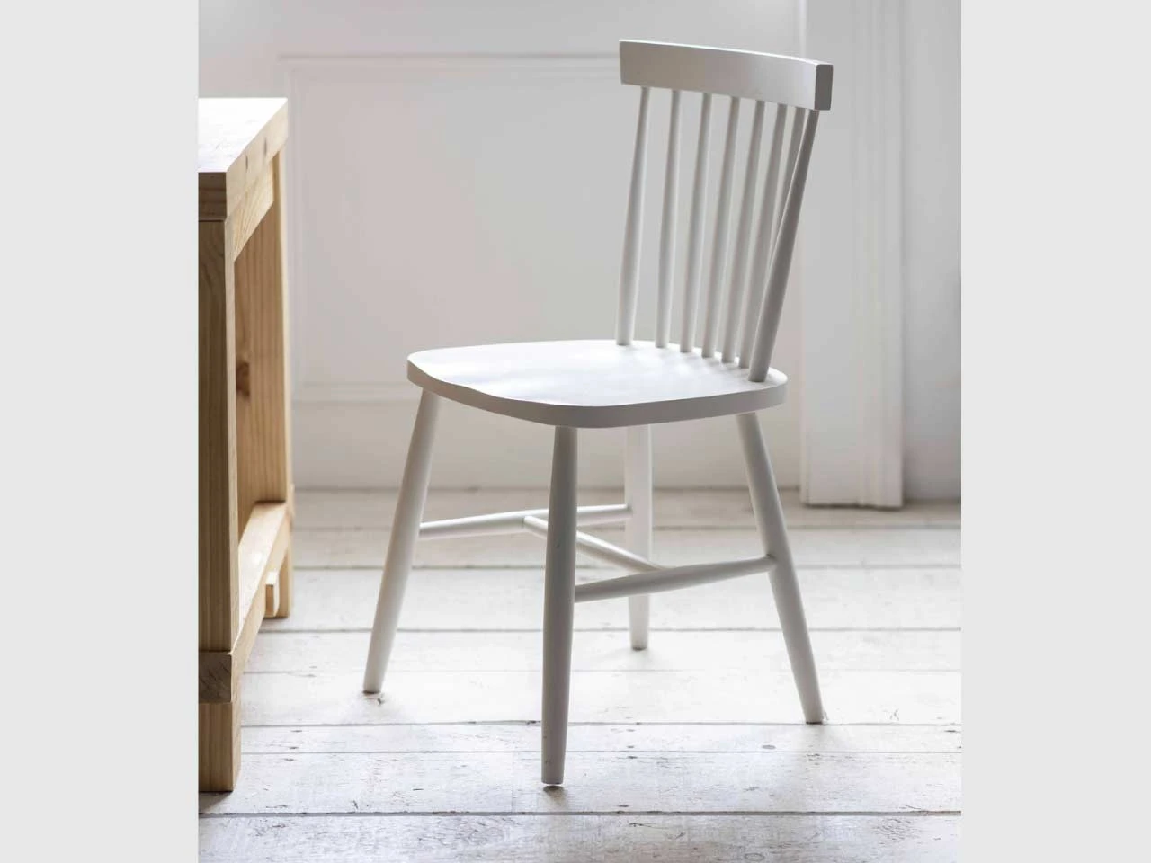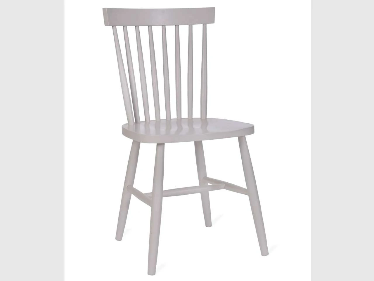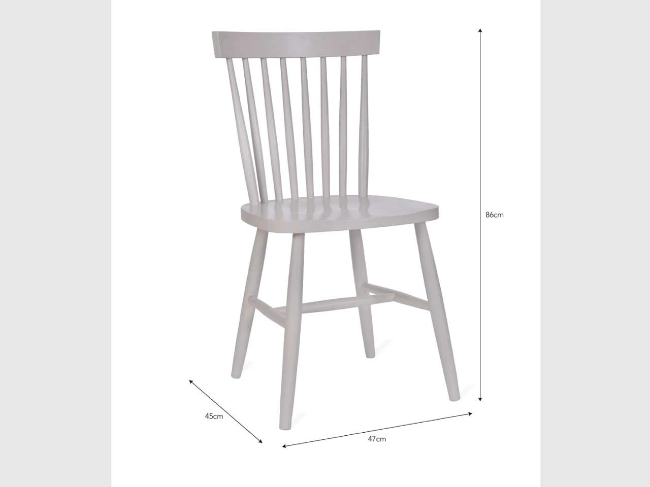A pair of spindle back chairs for indoor use. These chairs are crafted in beech timber and are fully assembled. The paint provides a natural stain protection, cleaning can be done with a damp cloth.