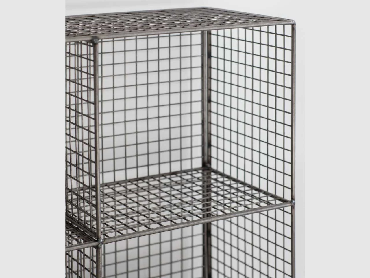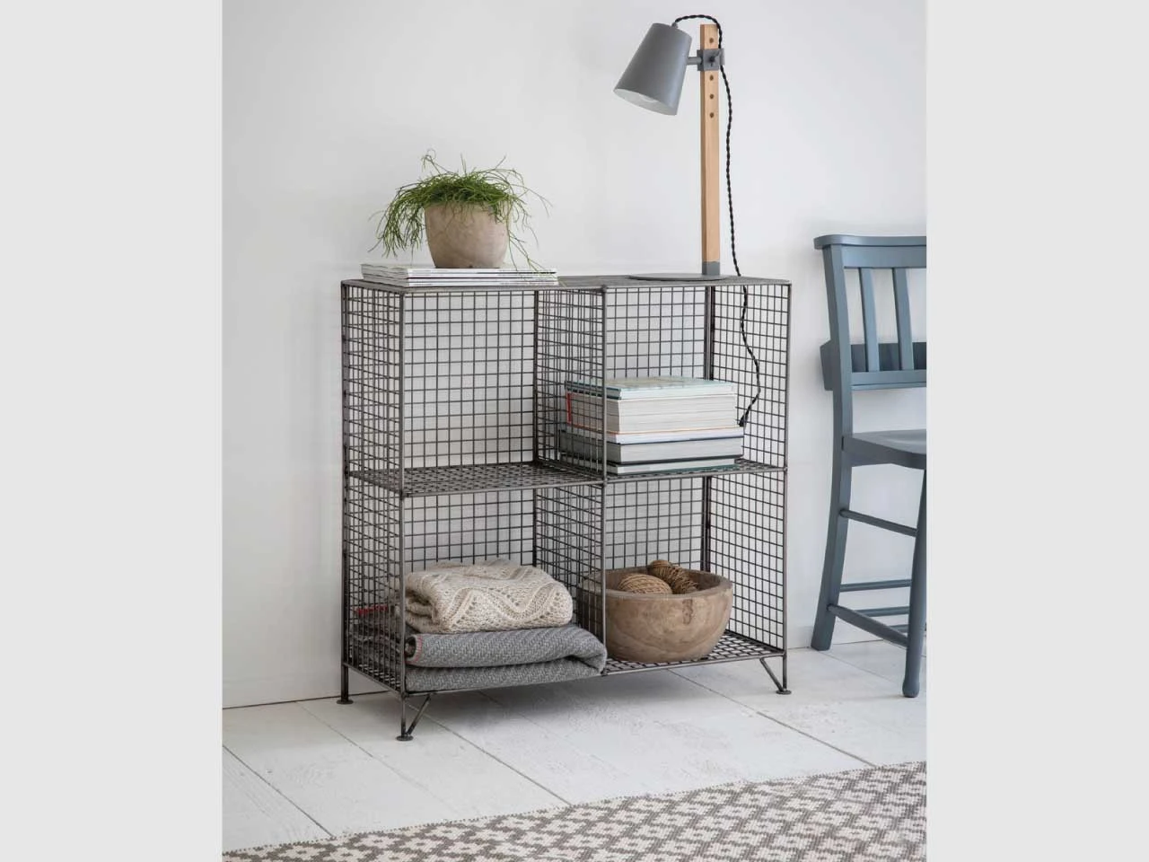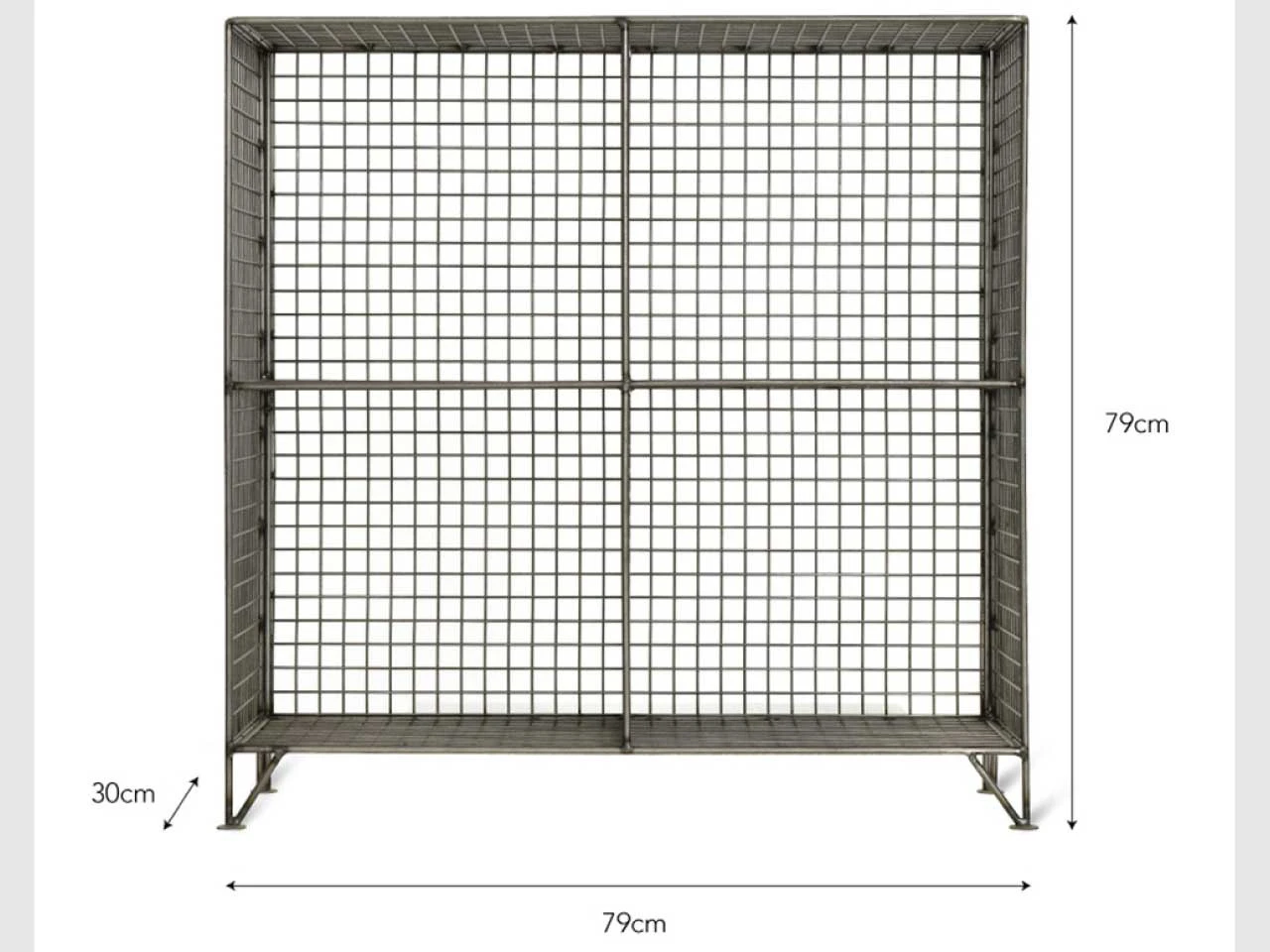 The Portobello small shelving unit is a square mesh wire rack with four equal storage spaces.Crafted in mesh, it has round discs on the feet for extra stability. It is shipped out fully assembled so is ready to fill as soon as it arrives. Designed for indoor use only, it will perfectly suit any room or office. Also available in Large.