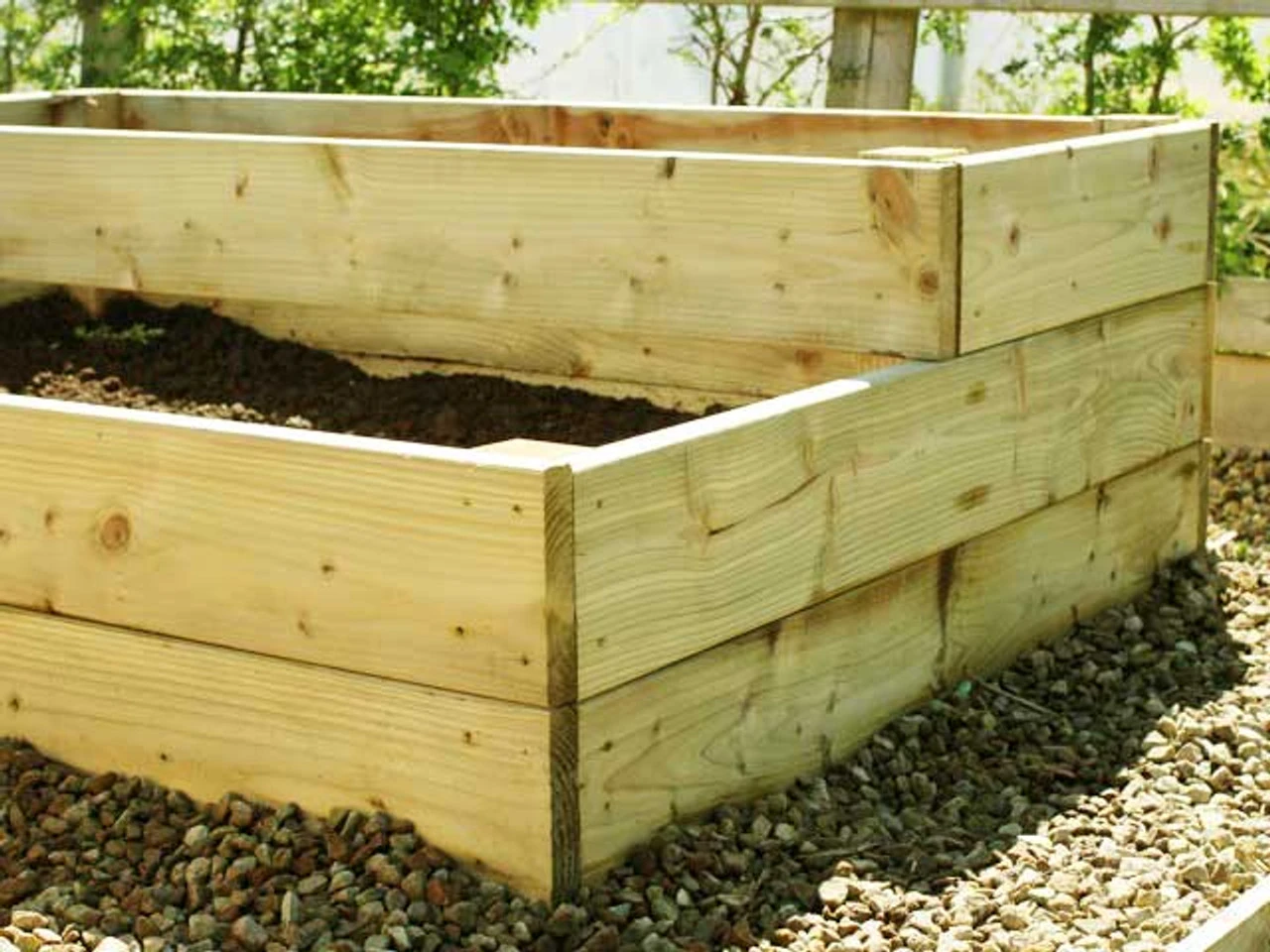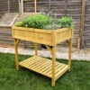 The ‘Premier’ Split Level raised vegetable bed is one of our most substantial and attractive looking large wooden planters. The raised bed is built on 2 levels: a 34 cm high section and a 53 cm high section, meaning you can grow everything in this bed including the deepest root crops. The Split Level bed looks fantastic built against a garden fence, where the 2 tiers make a very attractive display and can be planted with crops from the higher tier tumbling down to the lower section.