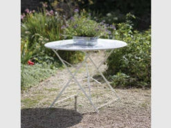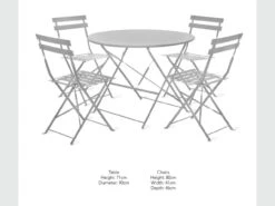 This French-inspired outdoor furniture set features a table and four chairs. The set can be folded flat for easy storage when the weather is not so favourable. Perfect for the garden, patio or outdoor decking. The lightweight but durable set comes in a range of colours. This set has a Chalk colour finish but it’s also available in Carbon, Forest Green and Clay.