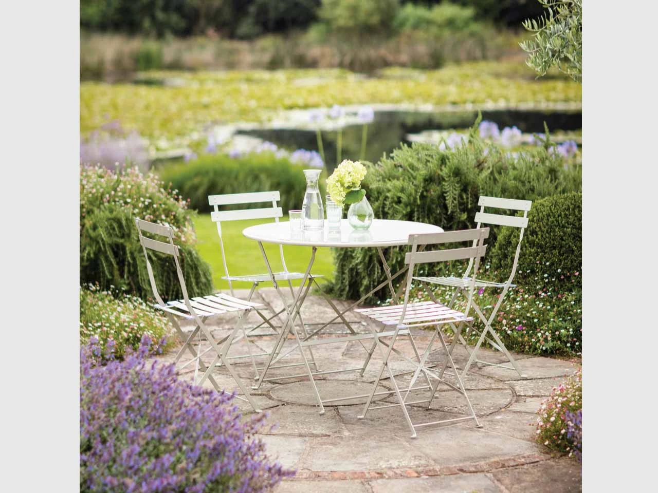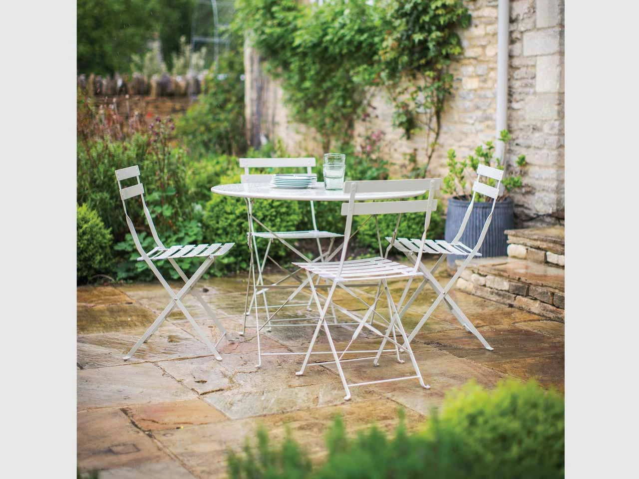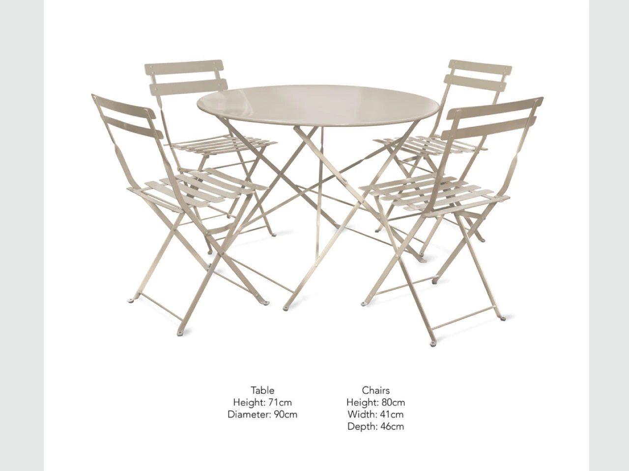 This French-inspired outdoor furniture set features a table and four chairs. The set can be folded flat for easy storage when the weather is not so favourable. Perfect for the garden, patio or outdoor decking. The lightweight but durable set comes in a range of colours. This set is in Clay but it’s also available in Forest Green, Chalk or Carbon.
