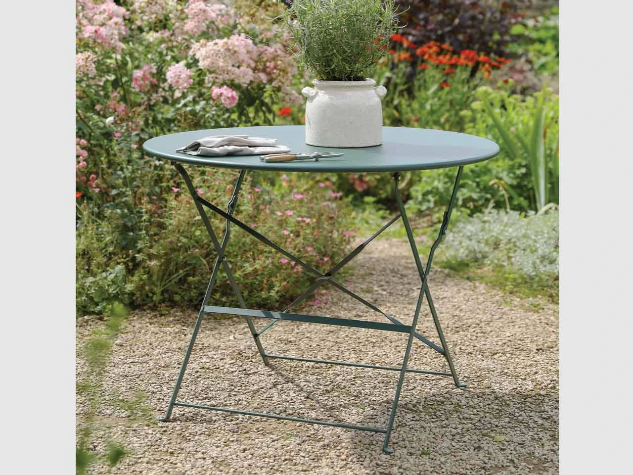 This versatile, foldable Bistro table is a great way to dine in the outdoors, surrounded by your garden foliage. It can seat four people and is crafted in weatherproof Powder Coated Steel.
