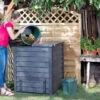 This barrel style tumbling composter is made from UV protected and BPA free plastics. It has a heavy duty construction for all season composting year after year. This composter has the ideal aeration system to speed up the composting process. It has built in mixing bars to streamline the mixing process and a large door for easier loading and unloading. It also has a built in tray in the base that collects the liquid fertiliser as well as a handle on top for easy moving.