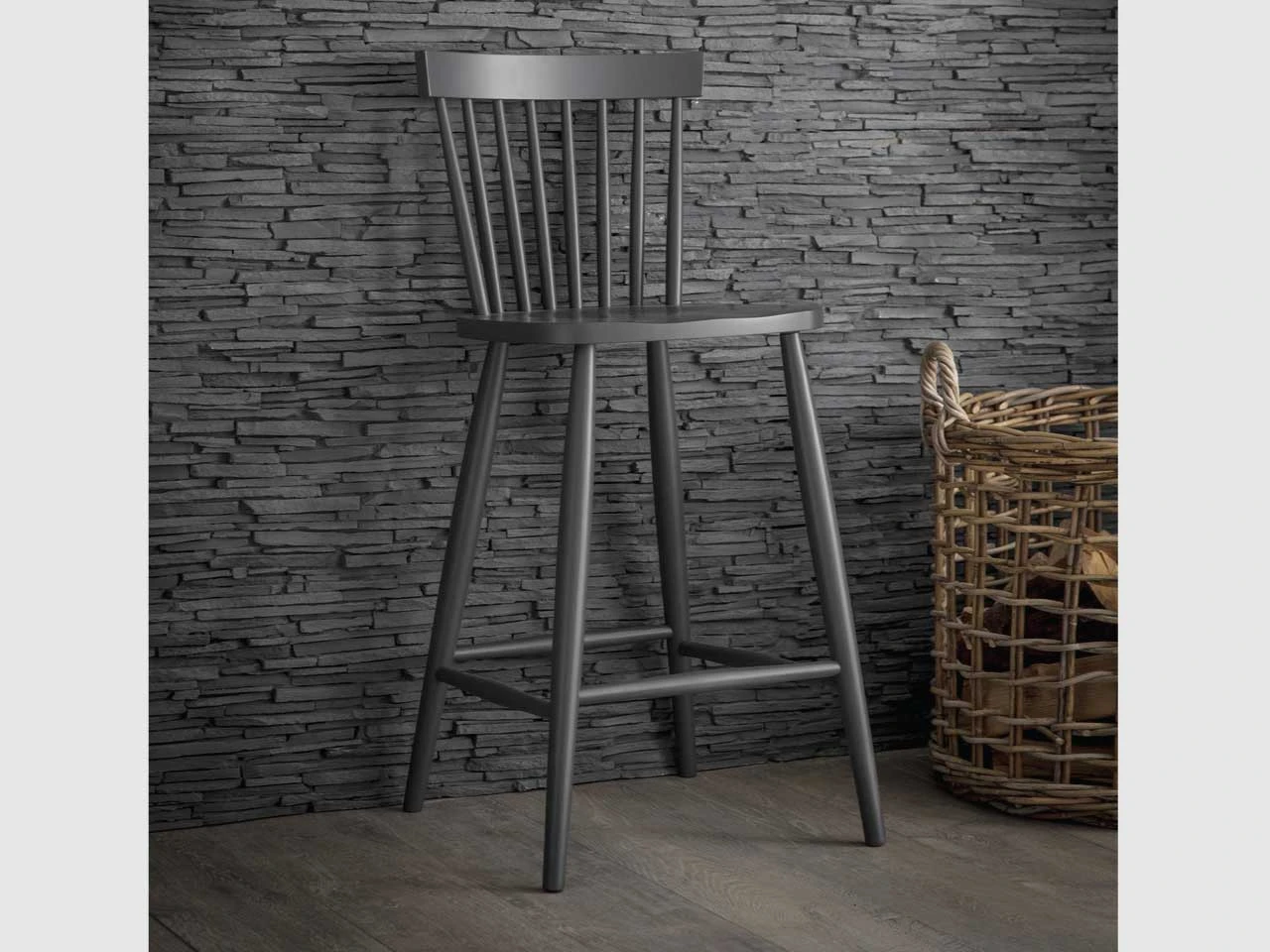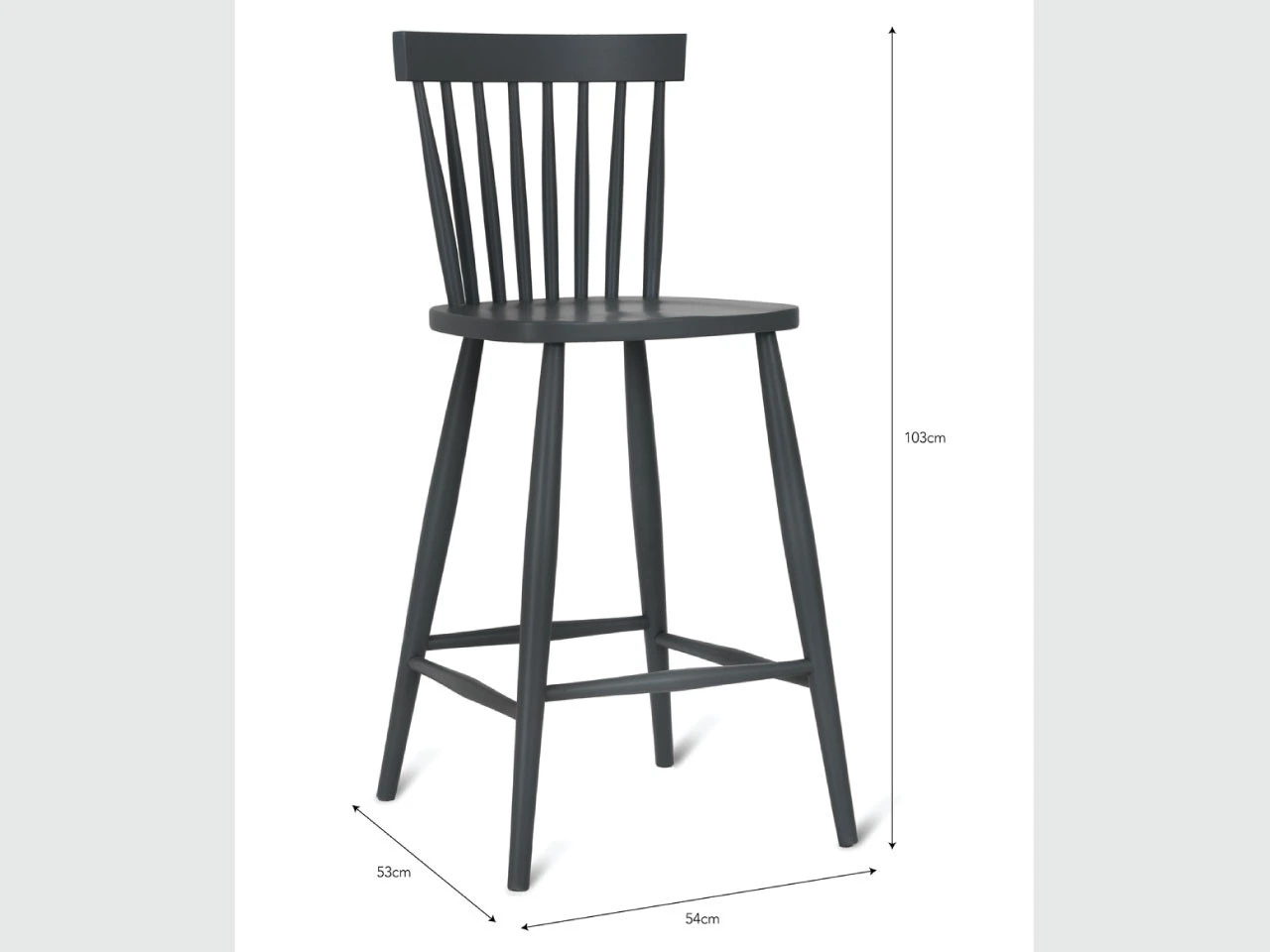 The spindle bar stool is made from Beech timber with a carbon black finish. The paint provides natural stain protection and the stools can be wiped clean with a cloth if needed. Designed for indoor use, the spindle bar stool is delivered fully assembled so no need for any tools or extra work. These stylish seats are ideal for use at any kitchen island or home bar.