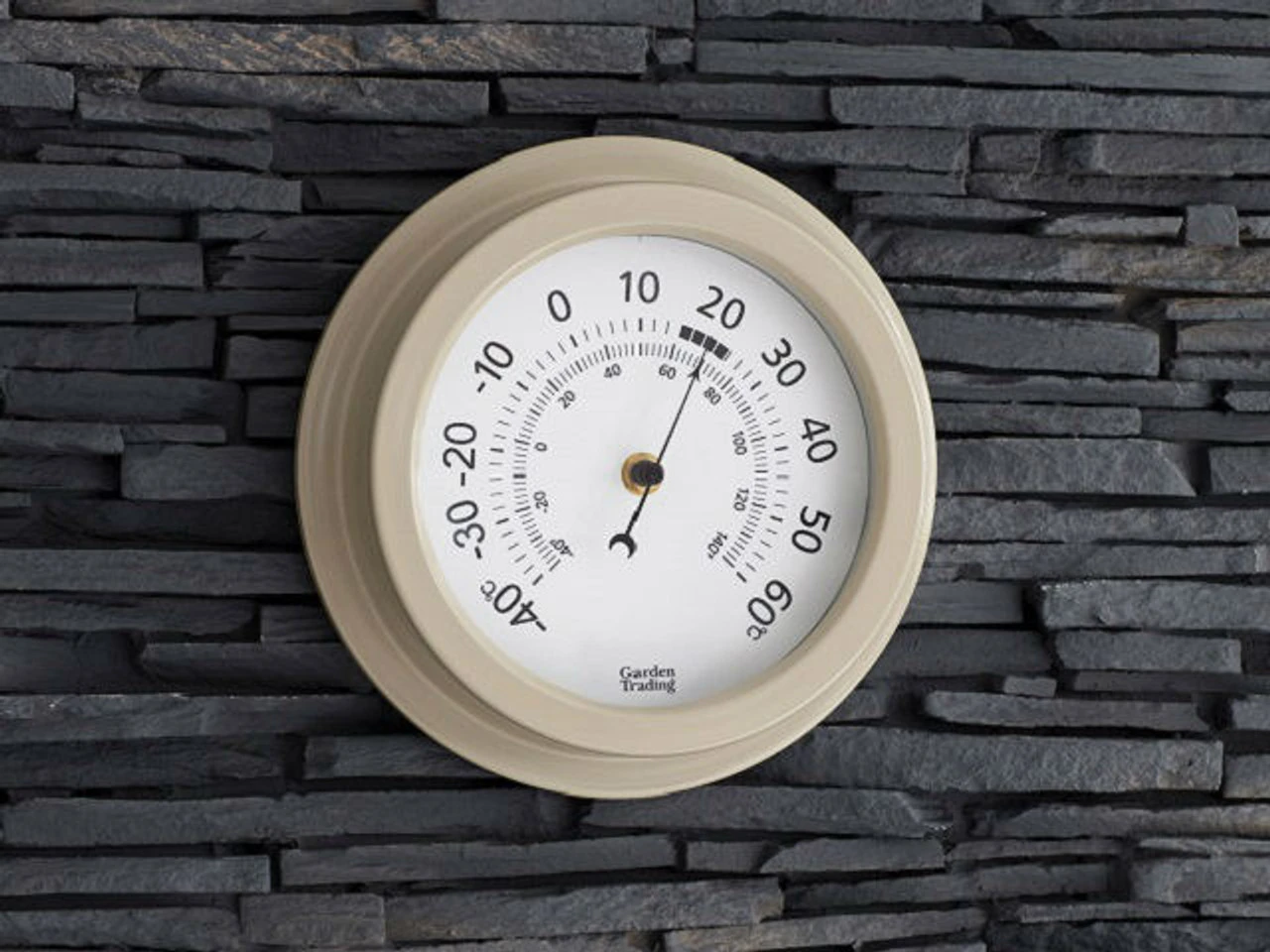 The Tenby thermometer is a high quality thermometer for both indoor and outdoor use, it is made from powder coated steel in a neutral clay colour finish. It has a keyhole hook on the back for hanging it and measures the temperature in both centigrade and fahrenheit. The Tenby thermometer also comes in a kraft box making it a great gift idea.