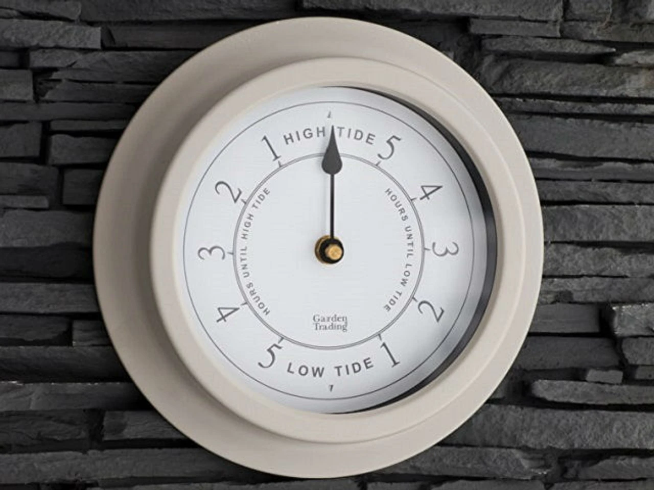 The Tide clock is a modern style tide tracking clock made from powder coated steel in a stylish and light putty colour. The clock is weatherproof as it is fully sealed to protect the workings from the elements, perfect for indoor or outdoor use. It works on a 13 hour cycle and should be set to your local beach at high tide. Great for any proper Beach forager like me or better still surfers or beach dog walkers. I sadly now have one in my bedroom.