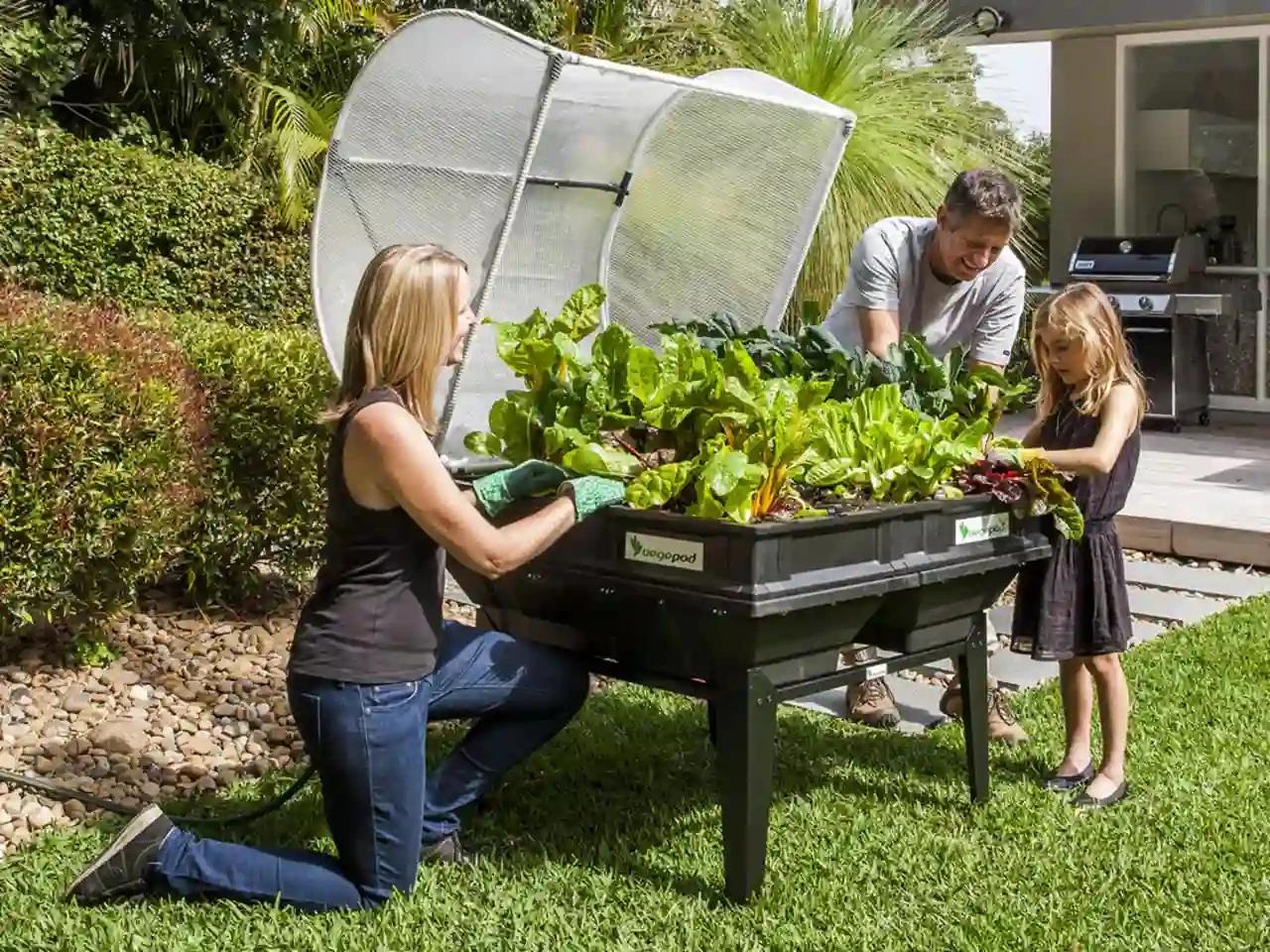 The Vegepod stand makes container gardening more comfortable and acessible.