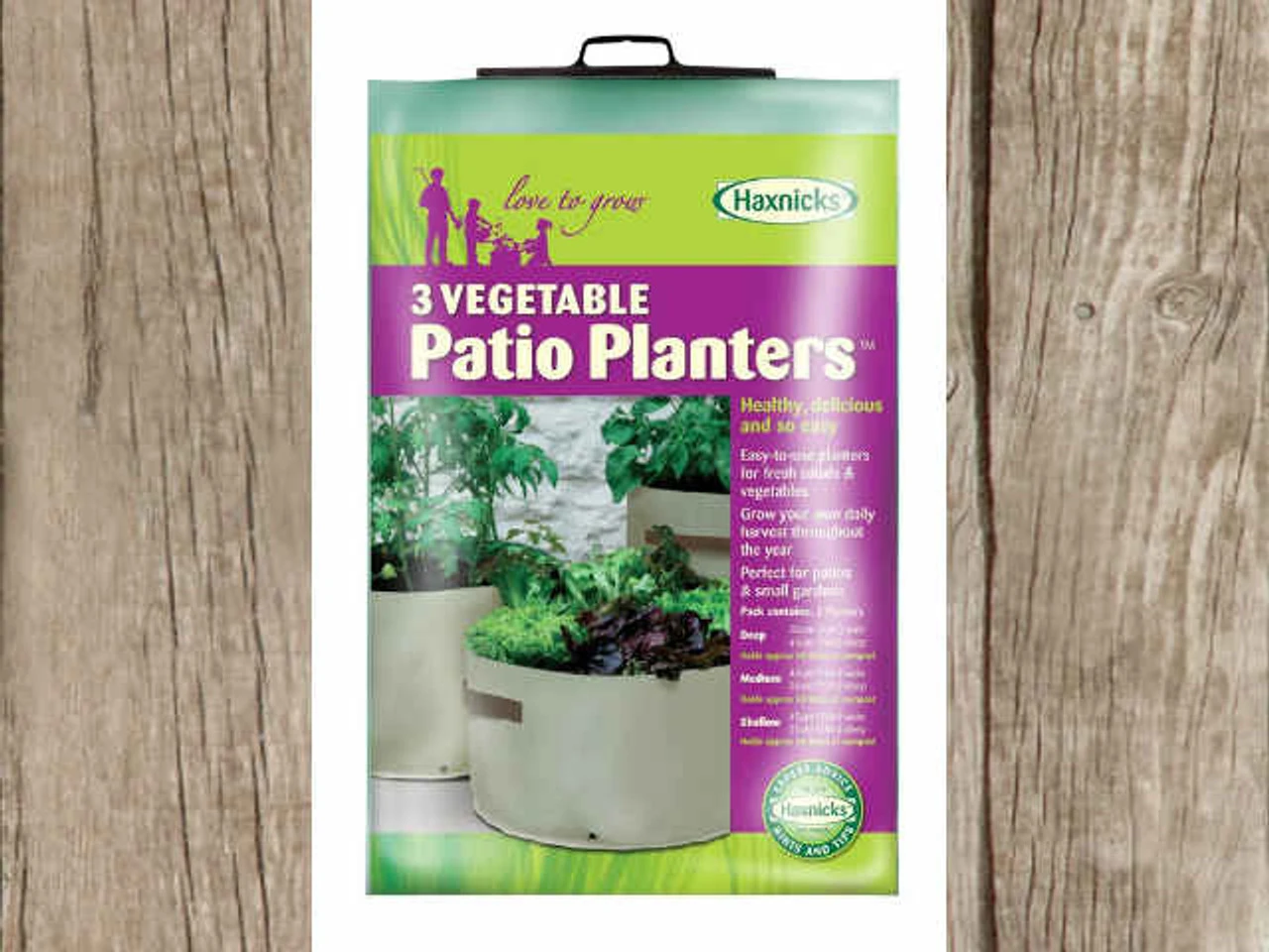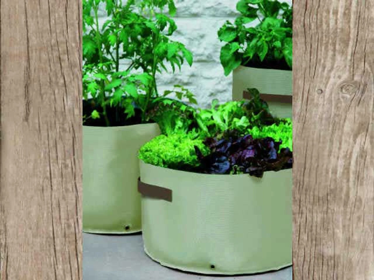 These vegetable planters come in a pack of 3 different sizes. They are perfect for easily growing a range of salads, herbs, and vegetables on a patio, balcony, or any small garden where space is limited. As stated, the patio planter pack includes 3 different sizes: shallow, medium, and deep. The different heights enable you to both seperate different vegetable plants and achieve a tiered garden effect. The planters, also called growbags, are reusable and easy to clean. They each have reinforced drainage holes on the bottom and strong handles on either side. They also fold flat for easier storage when not in use. Full growing instructions are included.