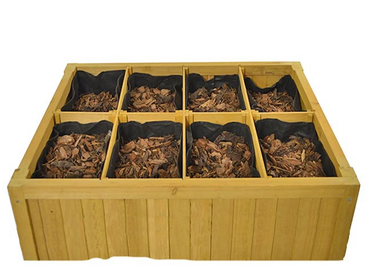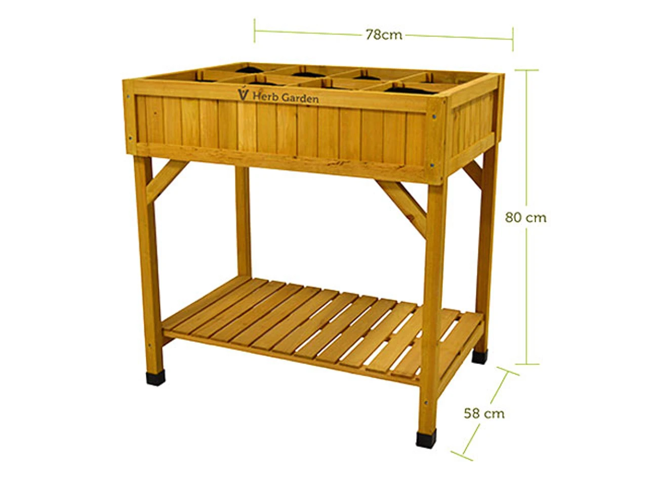 The feet of the raised herb planter have protective covers to prevent the timber from soaking up liquid and potentially splitting. A pre-formed liner and herb divider is included. The height of the planter keeps your produce away from slugs and snails and animals.