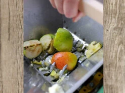 The heavy duty fruit crusher is very easy to use, it is manufactured by Vigo fruit presses and has been their most popular apple crusher for 25 years. Apples and other fruit crushed by turning the cast iron hand wheel, this builds up momentum and rotates the rollers and hooked blades. Crushing fruit for juices or cider couldn’t be easier. The crushing mechanism is made from acid-resistant alloy. The strong hardwood frame can fit on top of most of our presses making it simple to get the pomace into the press. This crusher is perfect for both the amateur and the professional juice maker alike.