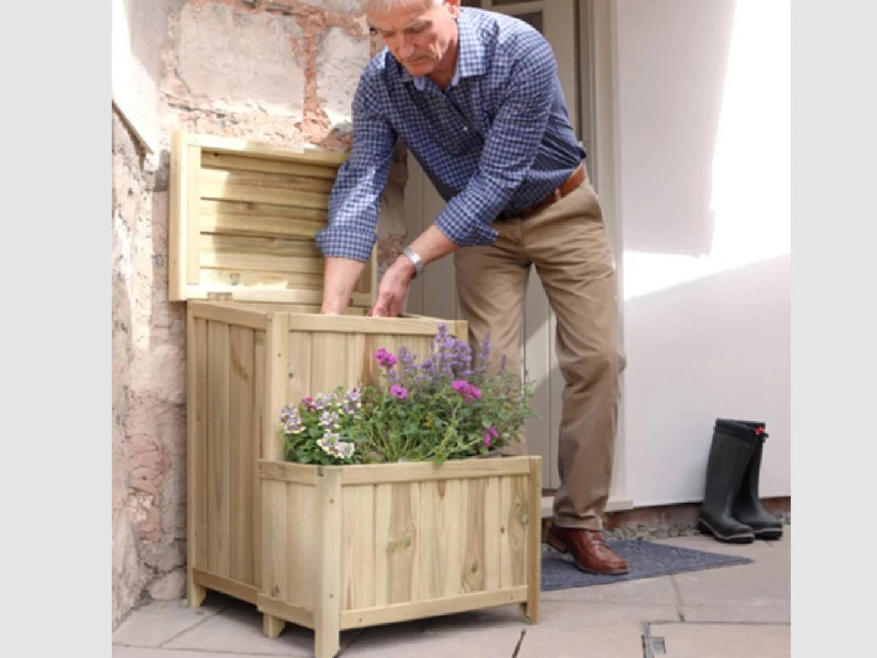 The Parcel Store with Planter can also do double duty as a welly store or as a storage area for garden tools and children’s toys.
